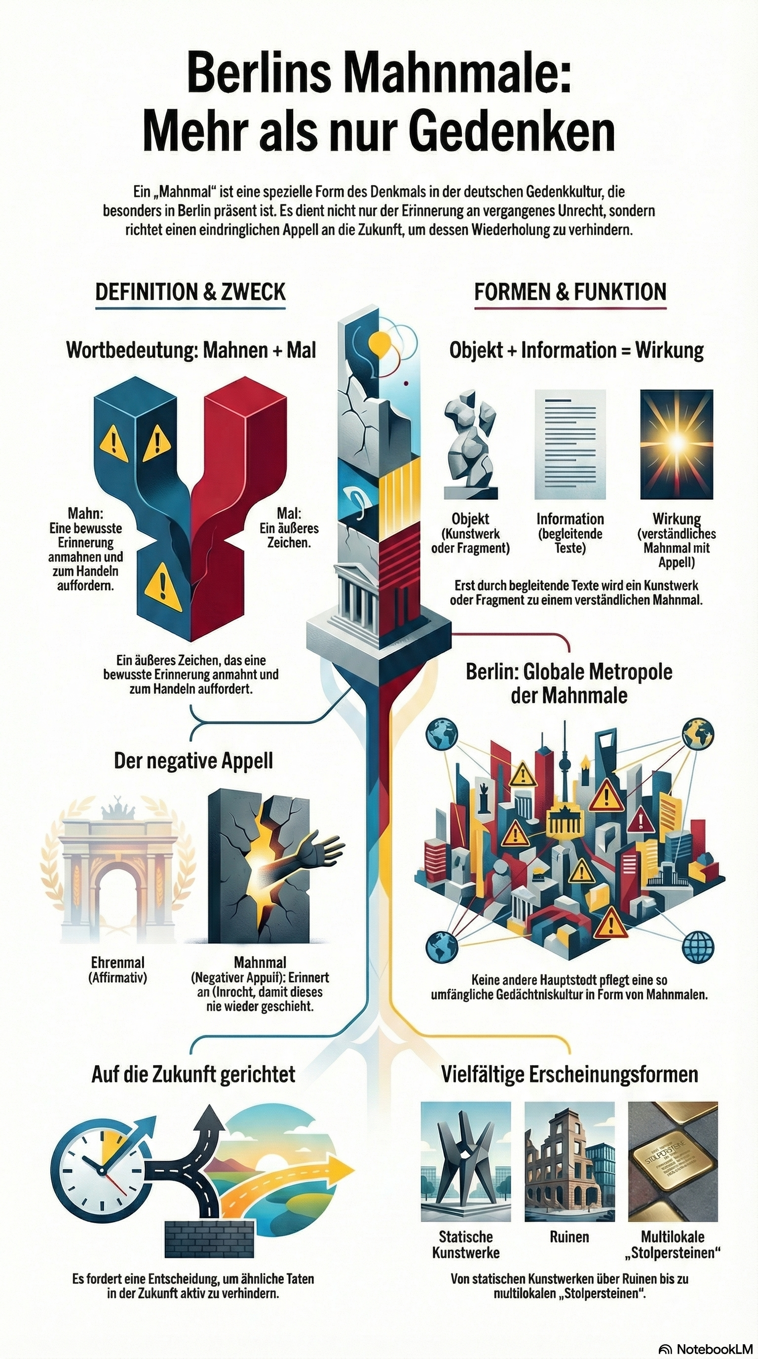 Erster Text: Mahnmale in Berlin, in: Erinnern Mahnen Gedenken (EMG), hg. v. E.H., Framersheim 2016, S. 74-82. Zweiter Text: Einleitung zu "Berlin Memopolis. Mahnmale in Berlin", 2. Auflage, Berlin: Talawah 2023.Dieser Text bietet eine tiefgehende Analyse des spezifisch deutschen Begriffs Mahnmal und grenzt diesen deutlich von herkömmlichen Denkmalen oder Ehrenmalen ab. Während ein Denkmal lediglich der Erinnerung dient, zeichnet sich das Mahnmal durch eine negative Appellfunktion aus, die das Wissen um vergangene Gräueltaten in eine ethische Verpflichtung für die Zukunft übersetzt, um deren Wiederholung zu verhindern. Der Autor untersucht dabei die Gedächtniskultur Berlins, in der Mahnmale als vielschichtige Objekte – von Ruinen bis hin zu künstlerischen Installationen – fungieren und stets eine Verbindung von historischer Information und existenzieller Reflexion erfordern. Letztlich wird das Mahnmal als ein dynamisches Instrument verstanden, das gegen das Vergessen und Verdrängen arbeitet und den Betrachter zu einer bewussten Entscheidung für soziales Handeln in einer globalen Gegenwart auffordert.
